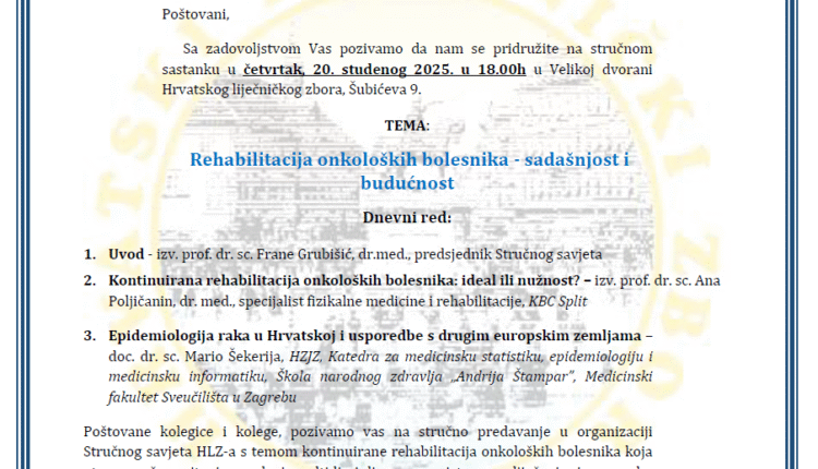 Rehabilitacija onkoloških bolesnika – sadašnjost i budućnost – 20. 11. 2025. Velika dvorana HLZ-a 12.11.2025 Novosti Rehabilitacija onkoloških bolesnika – sadašnjost i budućnost